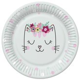 Papírový talíř velký - Smiling cat with Flowers Wreath