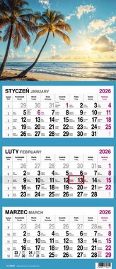 Kalendarz 2026 Trójdzielny Palmy