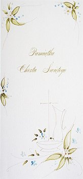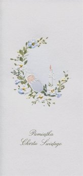 Karnet Chrzest DL C19 - Krzyż kwiaty niebieski