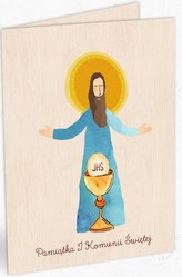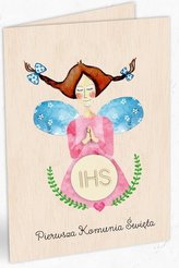 Karnet drewniany C6 Komunia dziewczynka + koperta