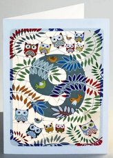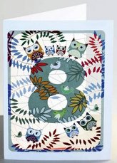 Karnet PM799 wycinany + koperta Urodziny 9 sowy