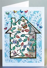 Karnet PM804 wycinany + koperta Sowy na drzewach