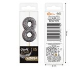 Świeczka piker 8 czarna brokatowa 11x3.5 cm