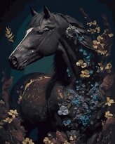 Malowanie po numerach czarne płótno - Czarny Koń..