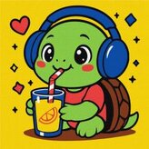Malowanie po numerach - Żółwik słucha muzyki 25x25