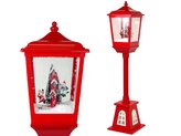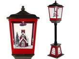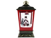 Lampion ze światełkami, sypiący śnieg czerw- czana
