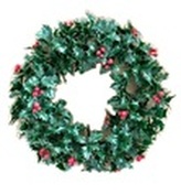 Wianek 30 cm świąteczny na sztywnej obręczy z gałązek świerkowych i czerwonymi kulkami