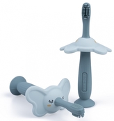 GiliGums Silikonový kartáček 2 v 1 - Slon, khaki