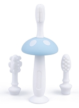 GiliGums Silikonový kartáček 3 v 1 - Hříbek, modrý