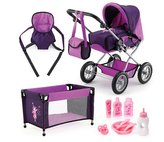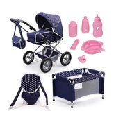 Wózek dla lalek różowo-szary z akcesoriami XEO