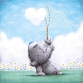 Kartka okolicznościowa Miś łapiacy serce z chmurki