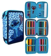 Školní penál třípatrový LILO A STITCH s výbavou modrý