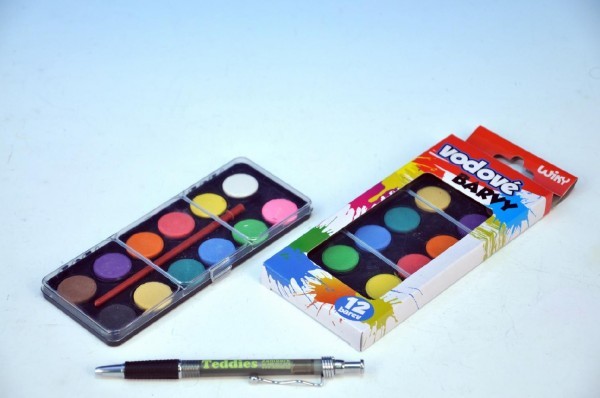 Vodové barvy 12 barev v krabičce 8x19cm