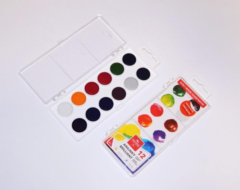 Vodové barvy o průměru tablet 22,5 mm s 12ti brilantními odstíny vhodné pro speciální výtvarné techniky, např. pro kolorování fotografií, malby portrétů, malbě na dekorační předměty, zdobení kraslic aj.. Vložené v plastovém barevníku s transparentním víčkem. číst celé