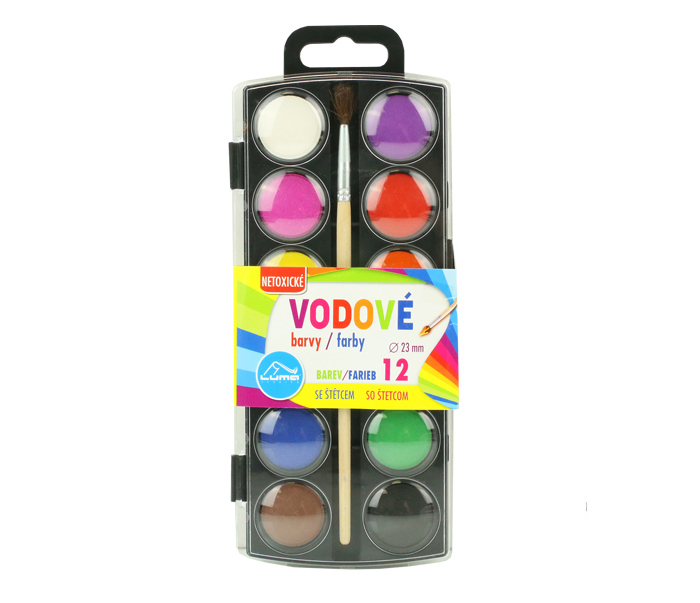 Barvy vodové se štětcem 12 barev, 23 mm LUMA