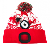 Čepice s čelovkou LED dětská červená s bambulí (USB nabí