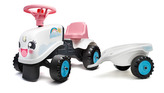 Odstrkovadlo - traktor Rainbow bílo/růžový s volantem a valníkem