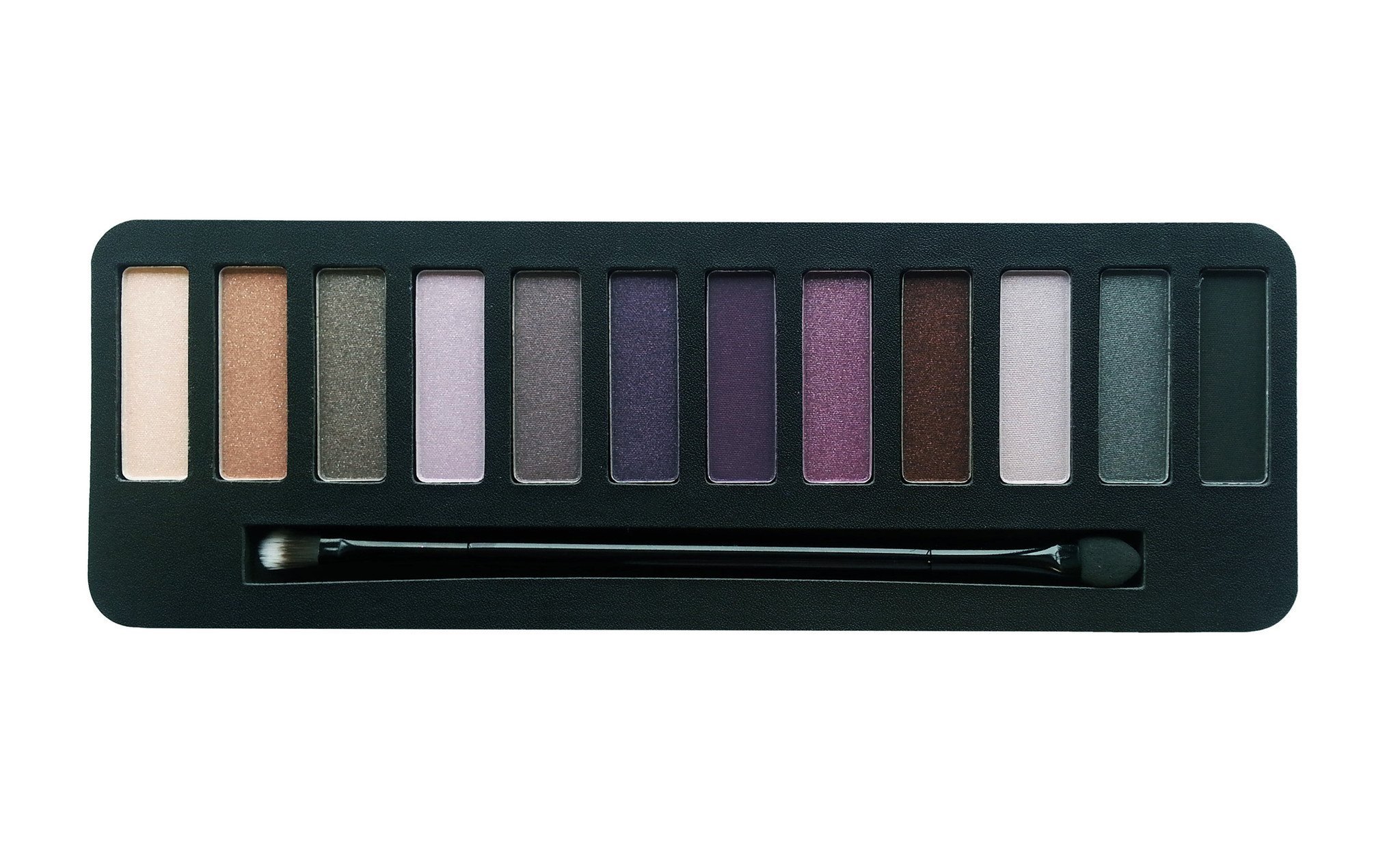 Tato paletka obsahuje 12 práškových očních stínů v barevné kombinaci od kouřově stříbrných po tmavě švestkové.