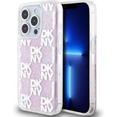 DKNY Liquid Glitter Checkered Pattern kryt iPhone 15 Pro růžový