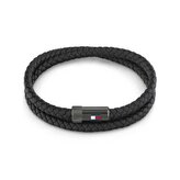 Černý kožený náramek s ocelovým zapínáním Casual Core 2790262 Tommy Hilfiger / Délka: 19 cm