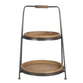 Dvoupatrový etažér dřevo kov Ø 46*74 cm