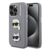 Karl Lagerfeld Grained PU K&CH Heads Zadní Kryt pro iPhone 15 Pro Grey