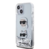 Karl Lagerfeld Liquid Glitter Karl and Choupette Head Zadní Kryt pro iPhone 15 Silver