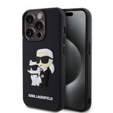 Karl Lagerfeld 3D Rubber Karl and Choupette kryt iPhone 15 Pro Max černý