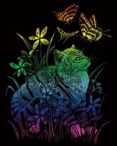 Duhový škrabací obrázek Kočka s motýly