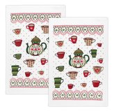 Kuchyňské utěrky - sada 2 kusů - čajová konvička - červená, zelená - 40x60 cm