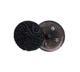 Knoflík - černý se vzorem kytek - prům. 15 mm