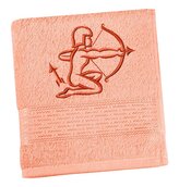 Froté ručník proužek s výšivkou znamení zvěrokruhu - Lososová - 50x100 cm