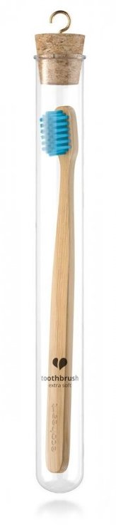 Ecoheart Bambusový kartáček ve skleněném pouzdře (extra soft) - modrý