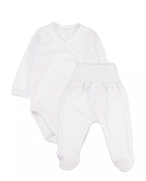 Zavinovací body dl. rukáv + polodupačky s žebrovaným vzorem, 2D sada MBaby, bílé, vel. 68; 68 (3-6m)