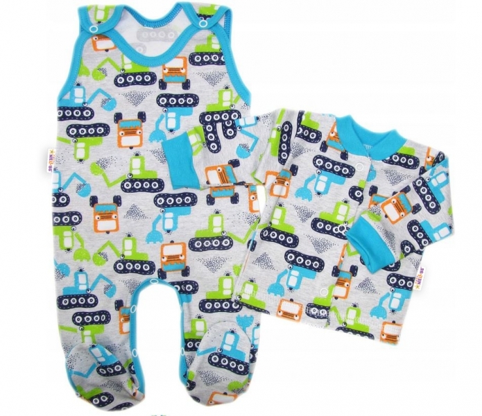 Baby Nellys 2-dílná sada, bavlněné dupačky s košilkou Bagr, šedá; 56 (1-2m)