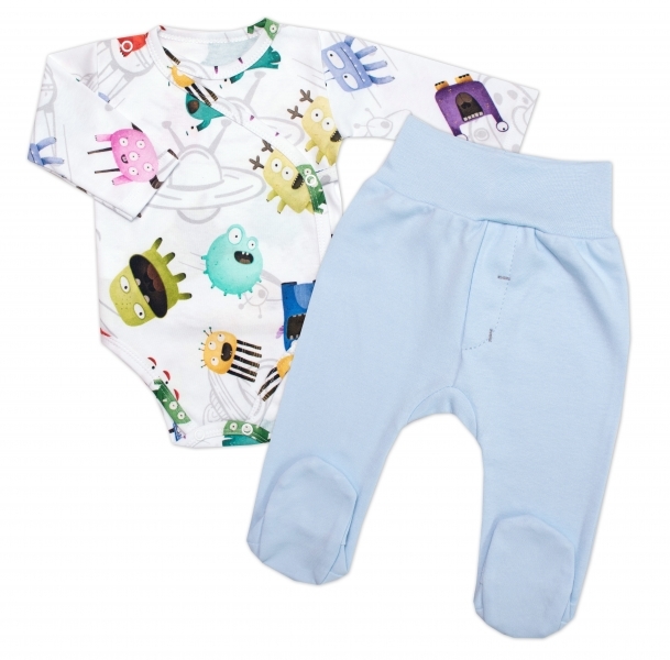 Kojenecké body zap. bokem + polodupačky UFO, 2D sada, Mrofi, bílá/modrá; 56 (1-2m)