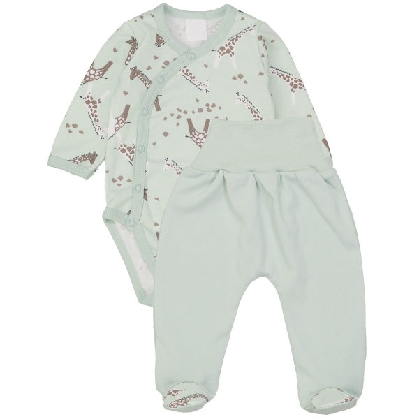 Zavinovací kojenecké body + polodupačky, bavlna, 2D sada, MBaby, Žirafy - máta, vel. 62; 62 (2-3m)