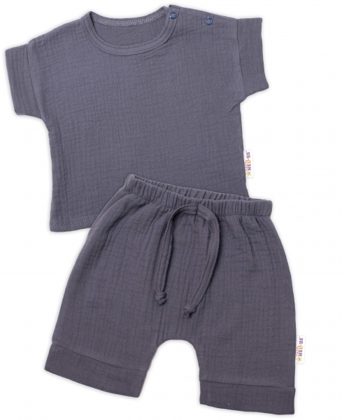 Baby Nellys 2-dílná mušelínová soupravička, tričko + kraťasky BOY, granát, vel. 62; 62 (2-3m)