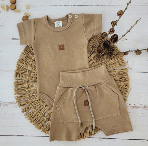 Body krátký rukáv + Baggy s klokaní kapsou, 2D sada Z&Z - sv. hnědá, vel. 62