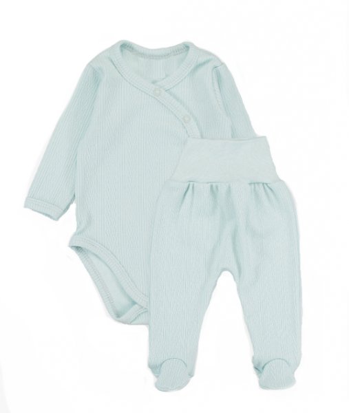 Zavinovací body dl. rukáv + polodupačky s žebrovaným vzorem, 2D sada MBaby, mátové, vel.62; 62 (2-3m)
