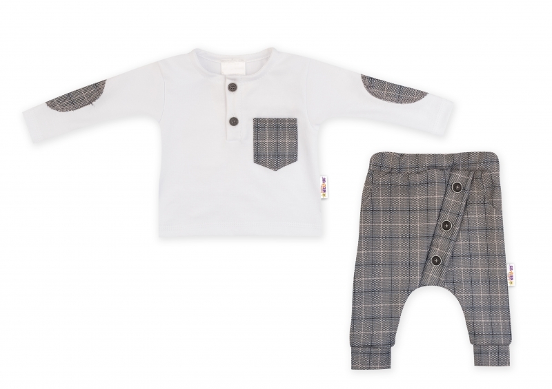 Baby Nellys 2-dílná sada Robert, tričko s dl. rukávem, kalhoty Baggy - šedé kárko, vel. 92; 92 (18-24m)