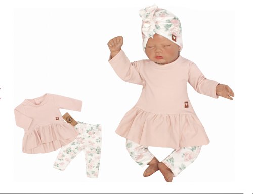Z&Z 2-dílná šatičky/tunika + legíny s květy - starorůžová, vel. 86; 86 (12-18m)