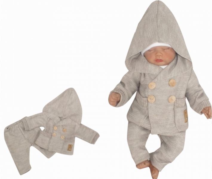 Z&Z 2-dílná pletená soupravička, svetřík s knoflíky a kalhoty, béžová; 56 (1-2m)