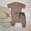 Žebrovaná souprava body kr. rukáv + tepláčky Magic, bavlna, čokoládová, vel. 68; 68 (3-6m)