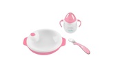 Set termotalířku s silikonovou lžičkou a hrnečkem, Pastel pink