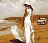 Malowanie po numerach Kobieta z parasolem na piaskowej plaży 40x50cm 1008936