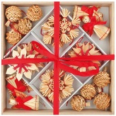 Slaměné dekorace v dřevěné krabičce 32 ks červený dekor