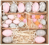 Sada vajíček (6 cm) 6ks, (4 cm) 8ks na zavěšení+ (6 cm) 4ks zápich+ 9 ks kytičky