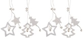 Hvězda a strom s glitry na zavěšení 13cm, 4 ks,stříbrná