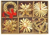 Slaměné dekorace v dřevěné krabičce 56 ks